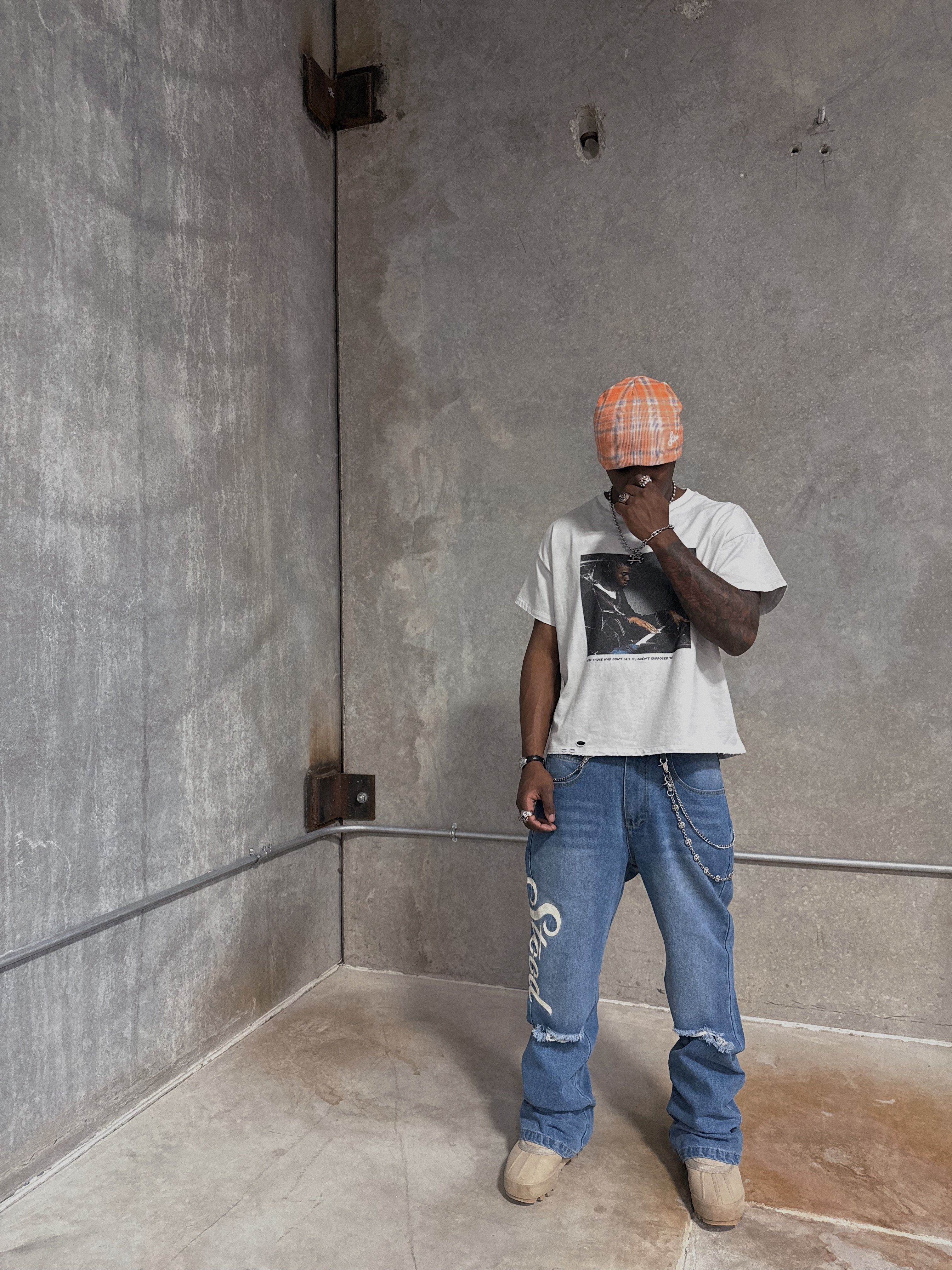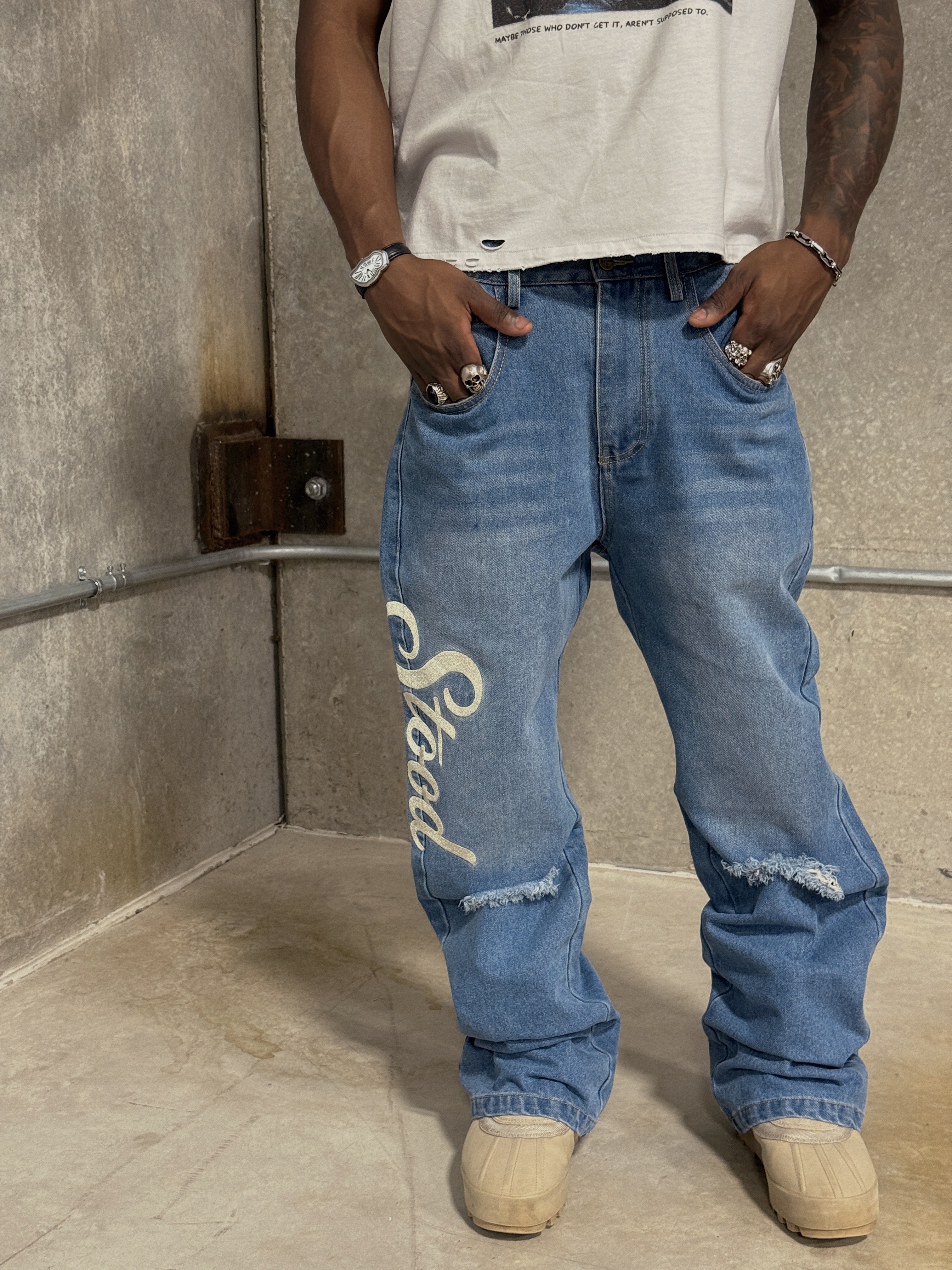 DISTRESSED KNEES/HEEL DRAG